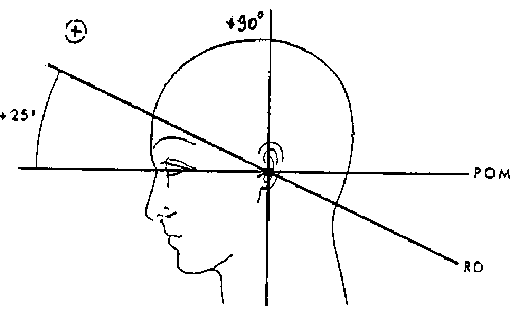 – – Le cliché se prend en 2 temps : Le plan OM=- 35°, sans toucher à la déflexion on fait tourner la tête de 35° du coté opposé à celui exploré