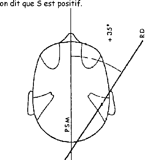 Par rapport au plan S, quelque soit le sens de cheminement du rayon directeur, si l’angle formé par S et le rayon directeur est ouvert en avant et du coté de la structure radiographiée,